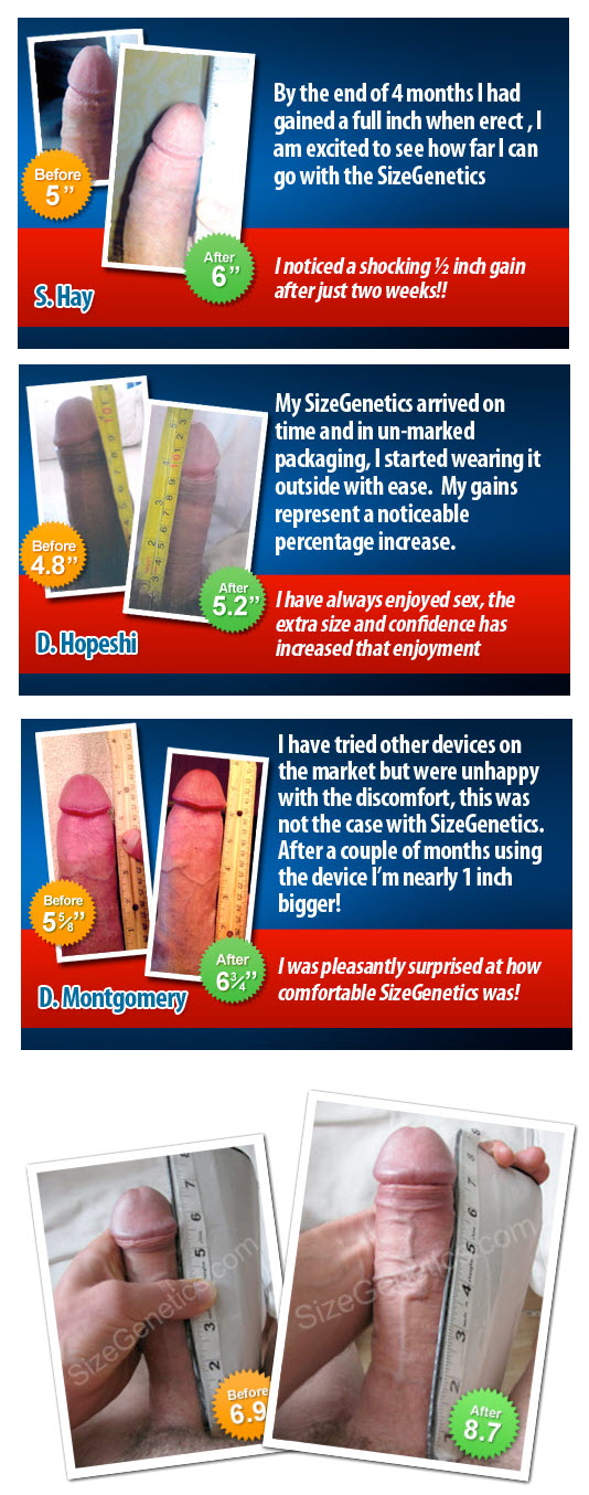 Usted ha visto mis resultados anteriores por lo que debería ser suficiente prueba de que funciona más el hecho de que Sizegenetics ofrecen una garantía de seis meses por lo que debería ser más que suficiente prueba porque no he visto a nadie más que ofrece una larga garantía.