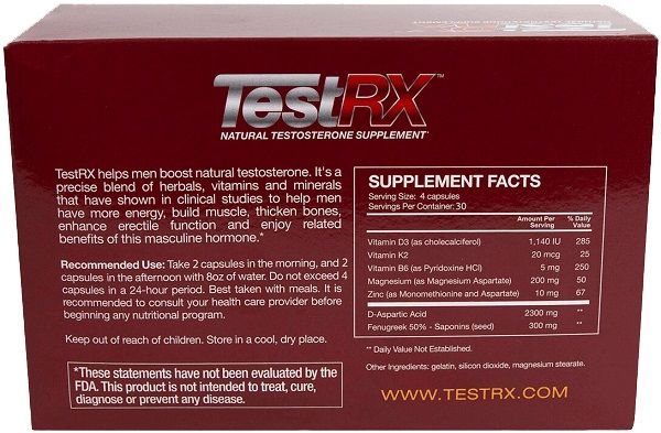A diferencia del refuerzo de testosterona sintética (como los esteroides anabólicos), TestRX es una forma totalmente natural de aumentar los niveles de testosterona de su cuerpo. Cuando su cuerpo crea más testosterona, es más probable que se vean las funciones corporales asociadas con niveles más altos (como un aumento del deseo sexual).